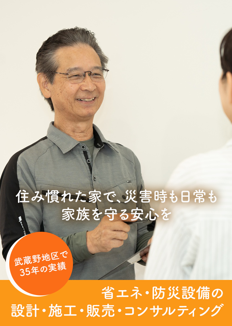 武蔵野エリアで35年、住まいの電気と防災のアドバイザーです。